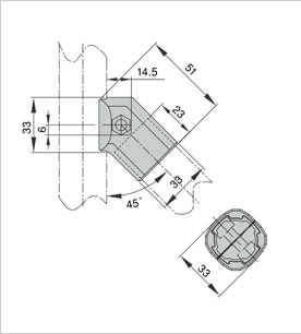 45度外扣件與內(nèi)漲件功能相同,應用于φ28鋁合金精益管型材框架45度或135度結(jié)構緊固連接,同時還可用于精益管框架斜撐加固,只需要將精益管插入外扣件內(nèi),然后將外扣件卡槽與精益管凹槽相連接鎖緊即可; |